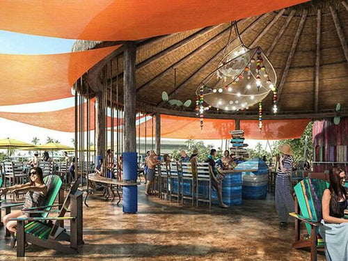 Grab a Coco Loco at the rowboat bar and settle into a rope swing seat.