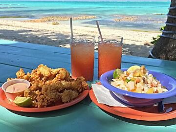 Bahamian cuisine showcases local seafood and reflects Spanish, West African, and British influences.